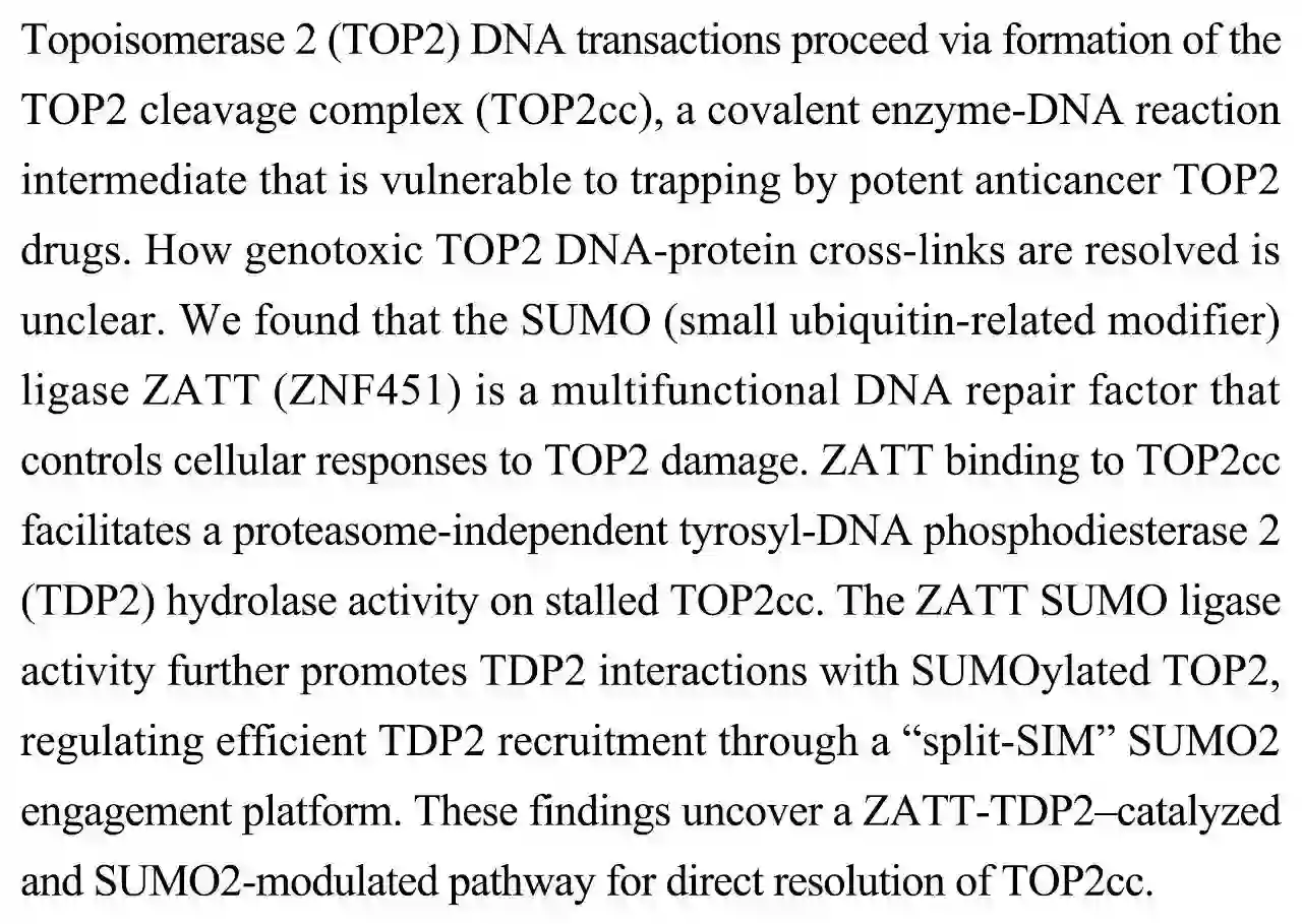 ZATT(ZNF451)直接介导拓扑异构酶 2 DNA-蛋白质交联复合体水解