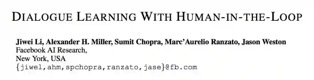 ■ 论文 | Dialogue Learning With Human-In-The-Loop