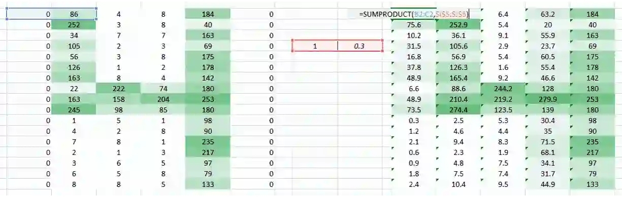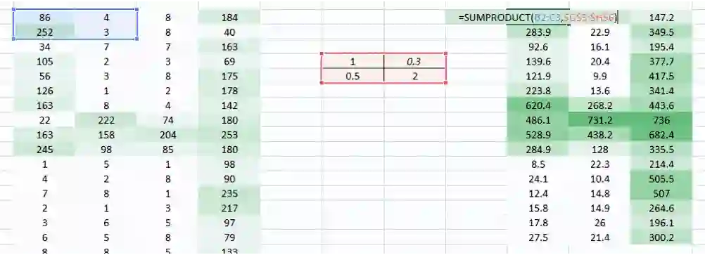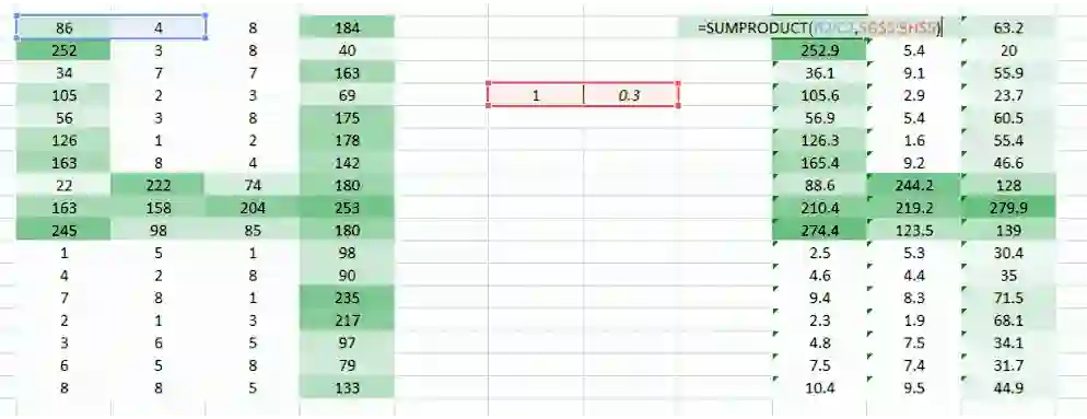 同时表格 (0.1,5) 的权重值也将给我们一个输出表格。