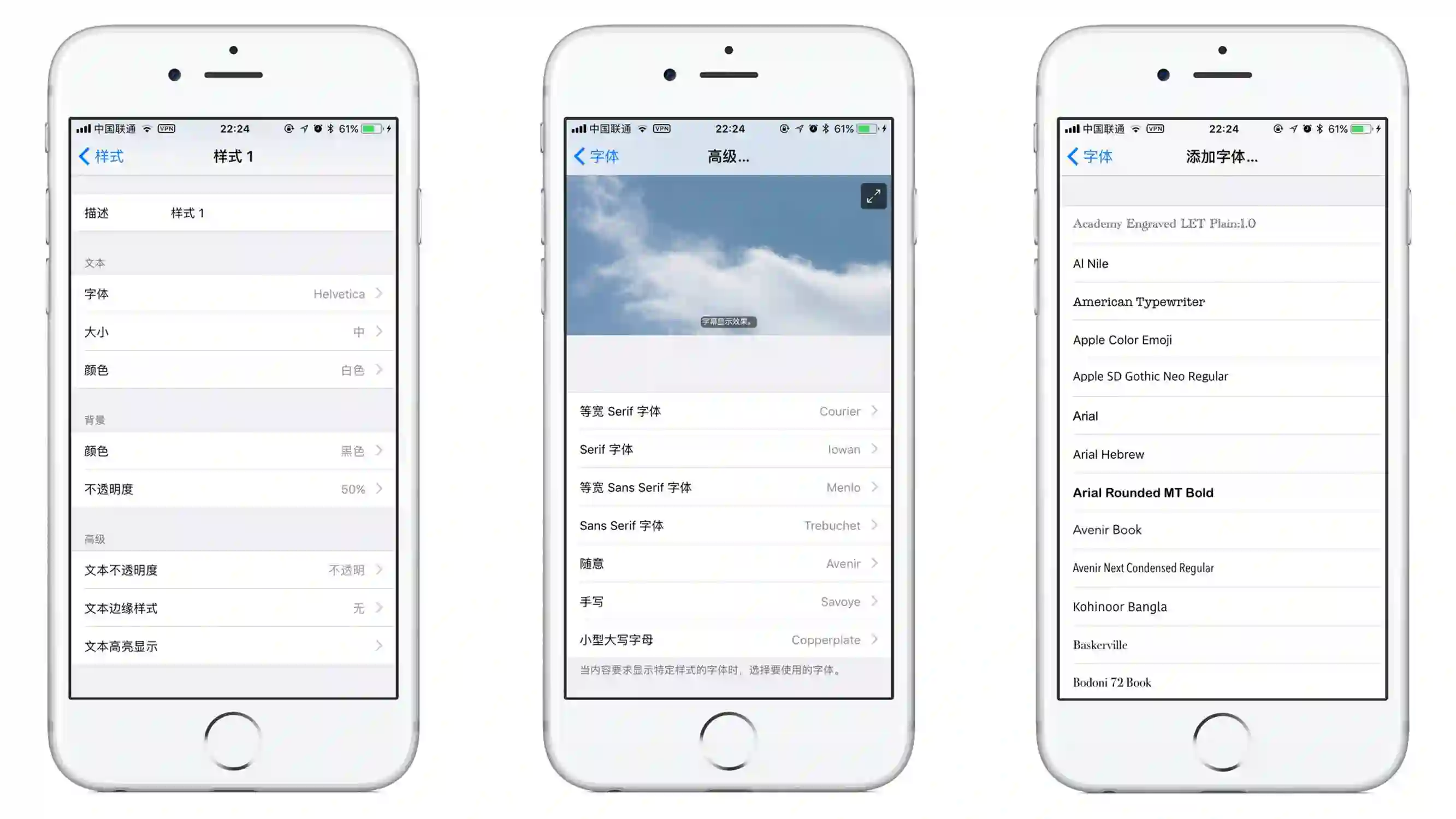 你可以自己创建样式,修改字体,大小,颜色,不透明度,甚至针对不同格式选用不同字体。你还可以使用通过描述文件等方法安装的字体,将网络上下载的你喜欢的字体,设置为 CC 的样式字体。