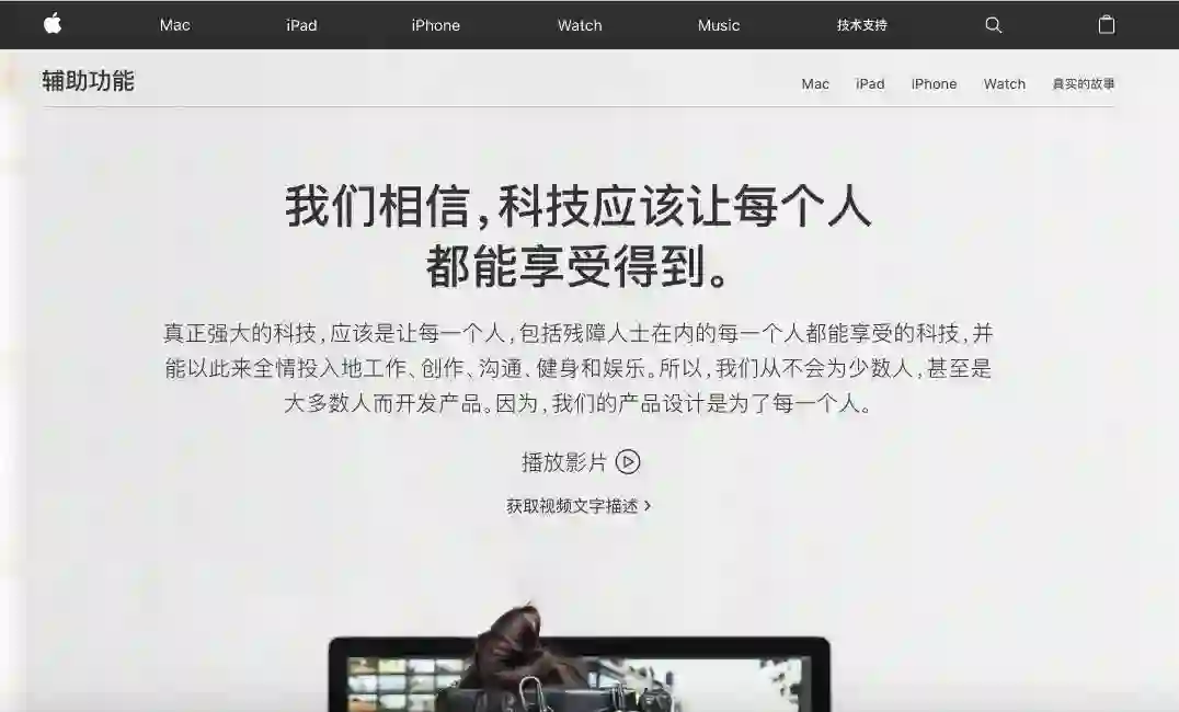 「我们相信,科技应该让每个人都能享受得到。」Apple 在辅助功能页面这样说道。Apple 的产品也对 CC 字幕做出了非常好的支持。不仅是产品,Apple 制作的许多视频也都提供 CC。