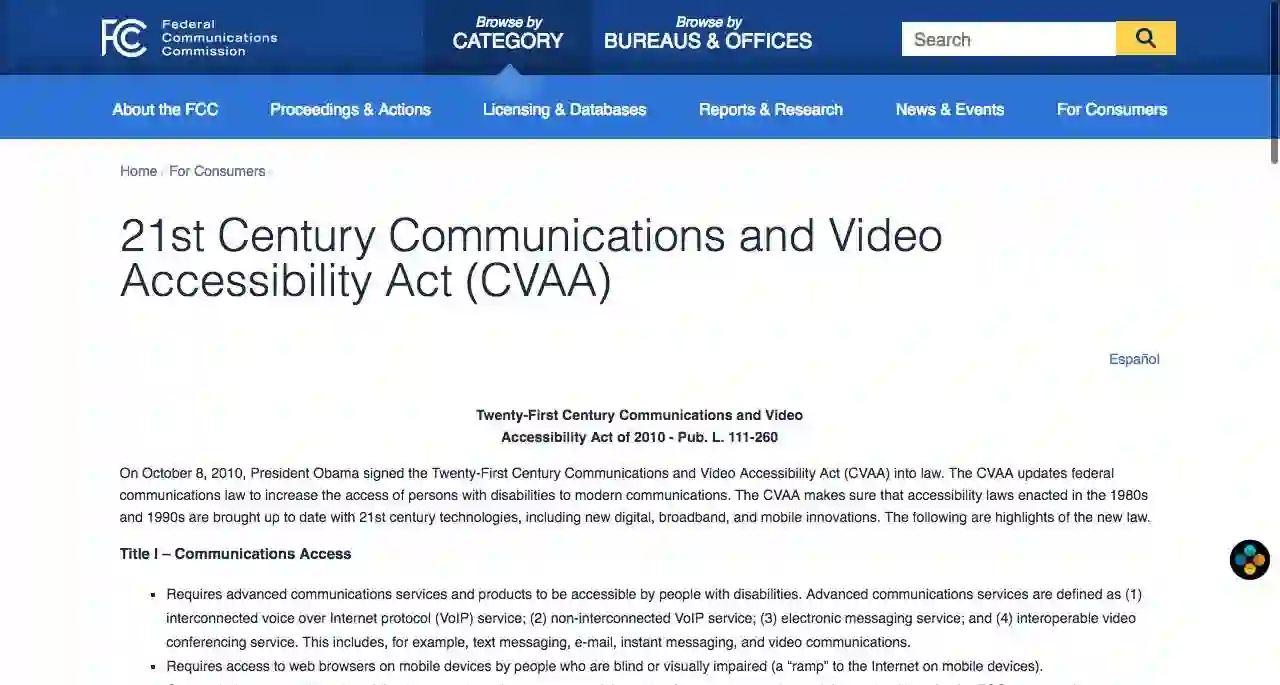 2010 年 10 月 8 日,奥巴马签署了 《21 世纪通信和视频可及性法案》,这项法案在 FCC(联邦通信委员会,你也许在部分数码产品上见过他的标志)官网也有公示,明确要求了电视提供商提供隐藏式字幕。