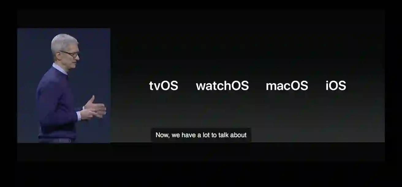 自 2012 起几乎所有的 Apple Keynotes 都带有英文 CC , WWDC 甚至在开发者官网有中文等语言 CC 的版本。你可以在 Apple Keynotes Podcast 下载这些发布会视频。