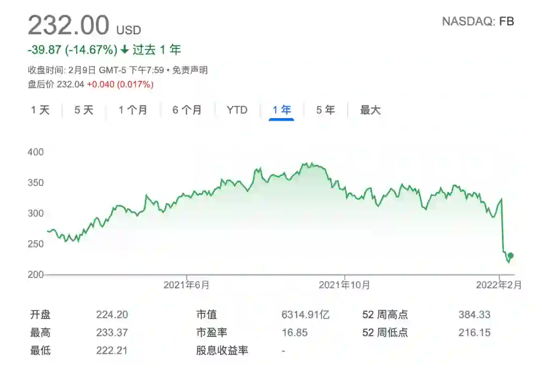 近一年Meta股价变化,来源:谷歌财经