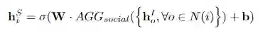 在GNN聚合部分,社交关系建模和上面的用户行为建模 是类似的。即通过用户基础表征和邻居用户表征计算Attention分数,然后将该Attention分数用于邻居向量聚合,最终计算出社交关系用户向量。