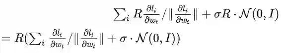 g_i 是 一个数据点的梯度(per-sample gradient),R 是 clipping threshold, sigma 是 noise multiplier。
