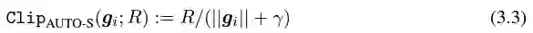 但这是完全不必要的,遵循第一性原理,从 privacy accounting theory 出发,其实 clipping function 只需要满足 Clip(g_i)*g_i 的模小于等于 R 就可以了。也就是说,Abadi's clipping 只是一种满足这个条件的函数,但绝非唯一。