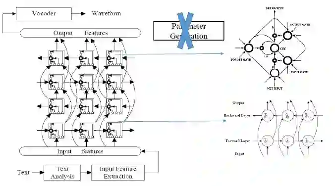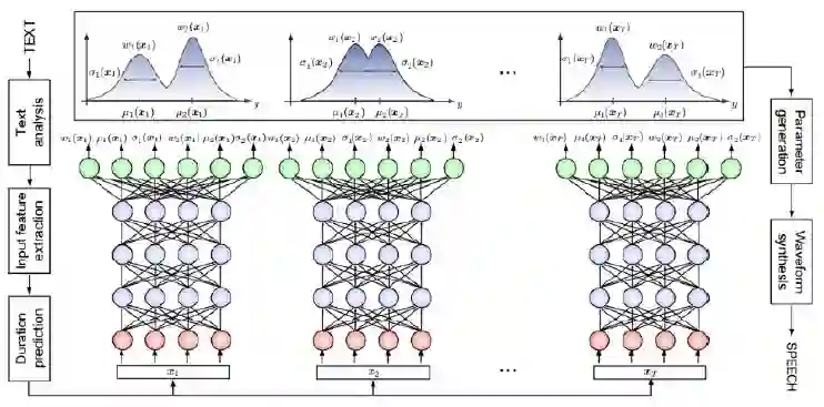 类似语音识别,将高斯函数替换为深度神经网络,逐帧预测输出。特点是输入和输出参数通过训练好的HMM模型进行帧对齐处理,神经网络的训练准则为最小均方误差(MSE)。下面介绍几个代表性的声学建模模型。