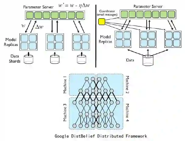 深度神经网络训练时间长,需要并行计算加速。主要方法有多机共享存储、同步随机梯度下降和异步随机梯度下降。