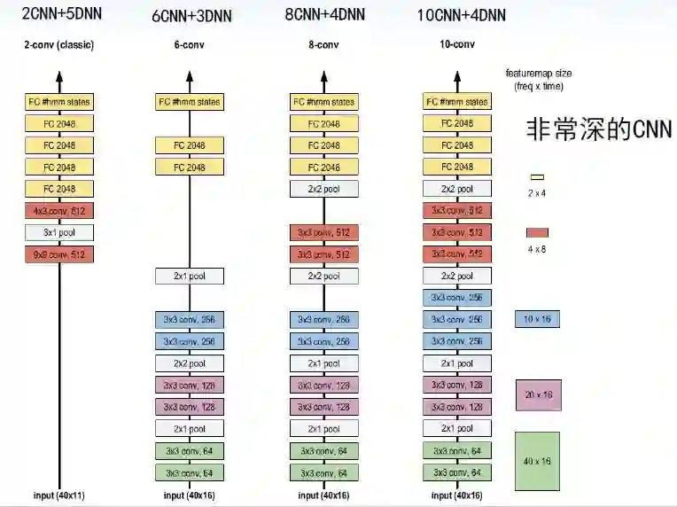 CNN+LSTM+DNN达到了迄今为止已知报道中的最好识别结果。语音谱图本身隐含时间特性,是时间延迟的图像,所以应用于语音谱图的CNN也叫时间延迟的卷积神经网络,它能很好地对信号进行描述学习,也比其他深度神经网络更能捕获到特征的不变性。谷歌、微软、IBM均在2016年发表成果证明非常深的CNN声学模型已超越其它深度神经网络声学模型。