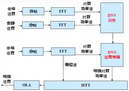 语音增强是指语音信号被不同噪声干扰甚至淹没后,从噪声背景中提取有用语音信号,抑制噪声干扰的技术。噪声类型包括混响、背景噪声、人声干扰、回声等。近两年深度神经网络被用于语音增强。将带噪语音输入,输出原干净声音,训练DNN,建立带噪语音与安静语音对数功率谱的映射关系,结果相比传统的子带谱减法、维纳滤波法、logmmse法等更能有效抑制非平稳噪声。