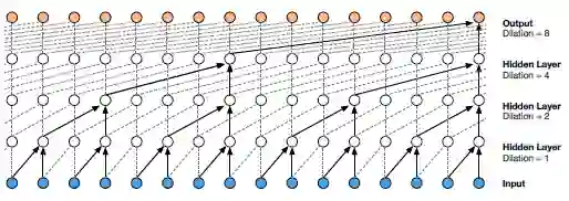 图为WaveNet采用的dilated causal convolutional layers