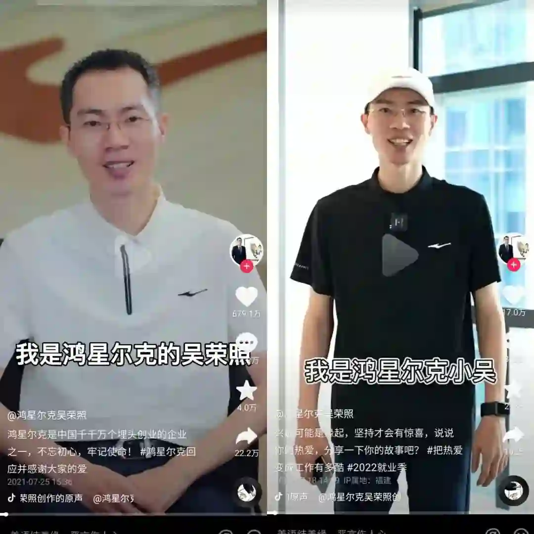 “鸿星尔克吴荣照”一条回应热搜的视频获赞高达670万,不少网友留言表示“良心企业家”“谦虚友善的好老板”“你的衣服上链接”。