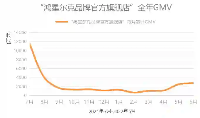 鸿星尔克走红十天后,主账号“鸿星尔克品牌官方旗舰店”GMV便突破了1.1亿,这个数字超过了接下来半年的总和。