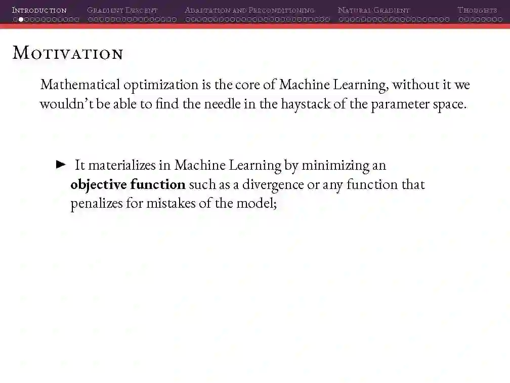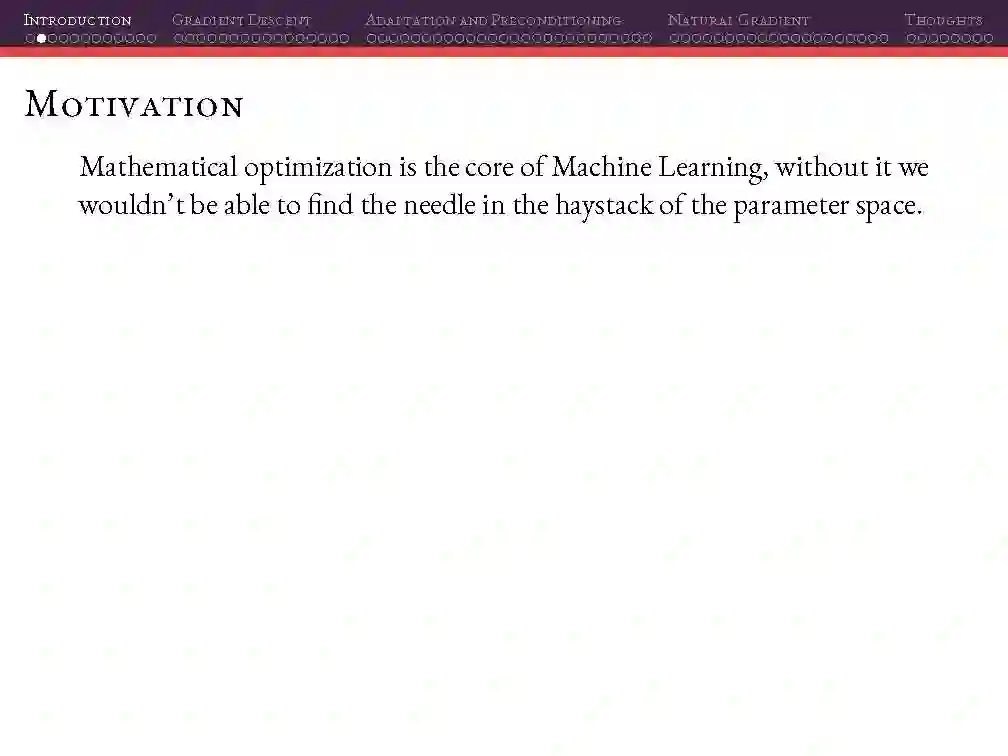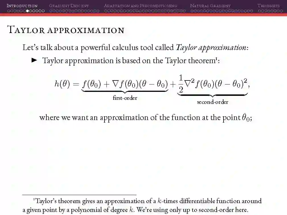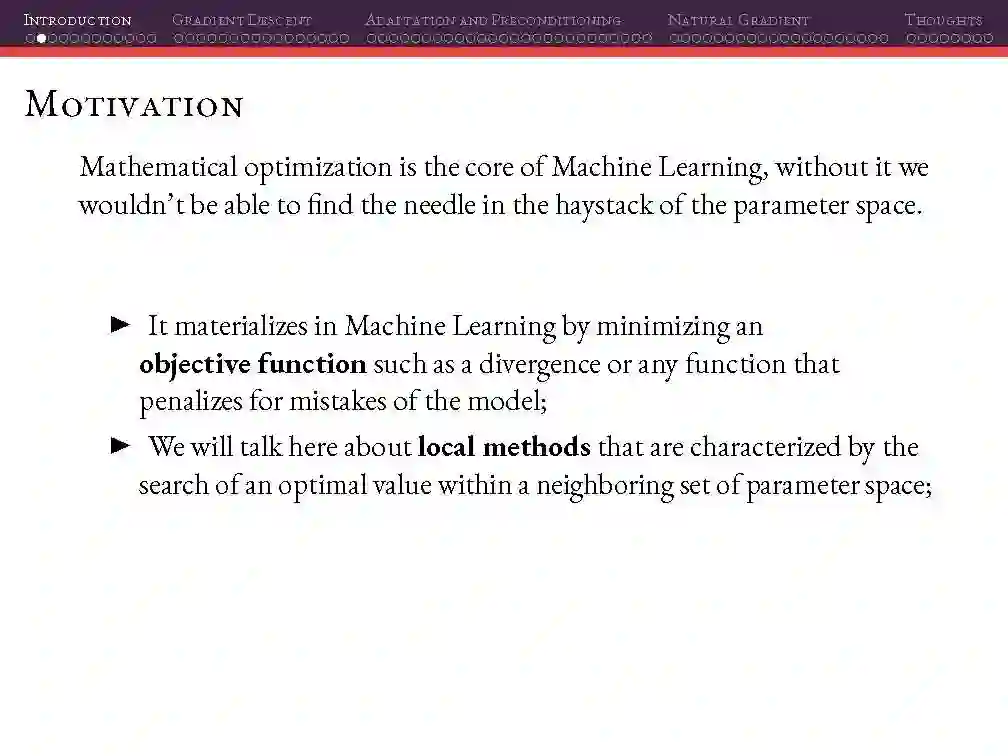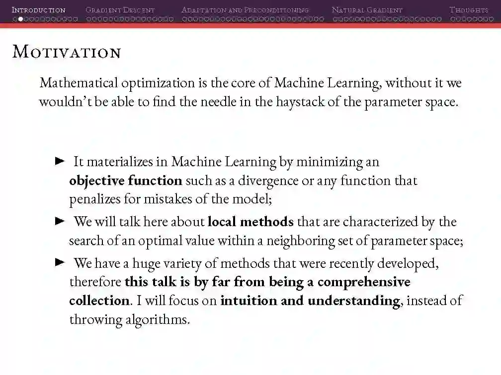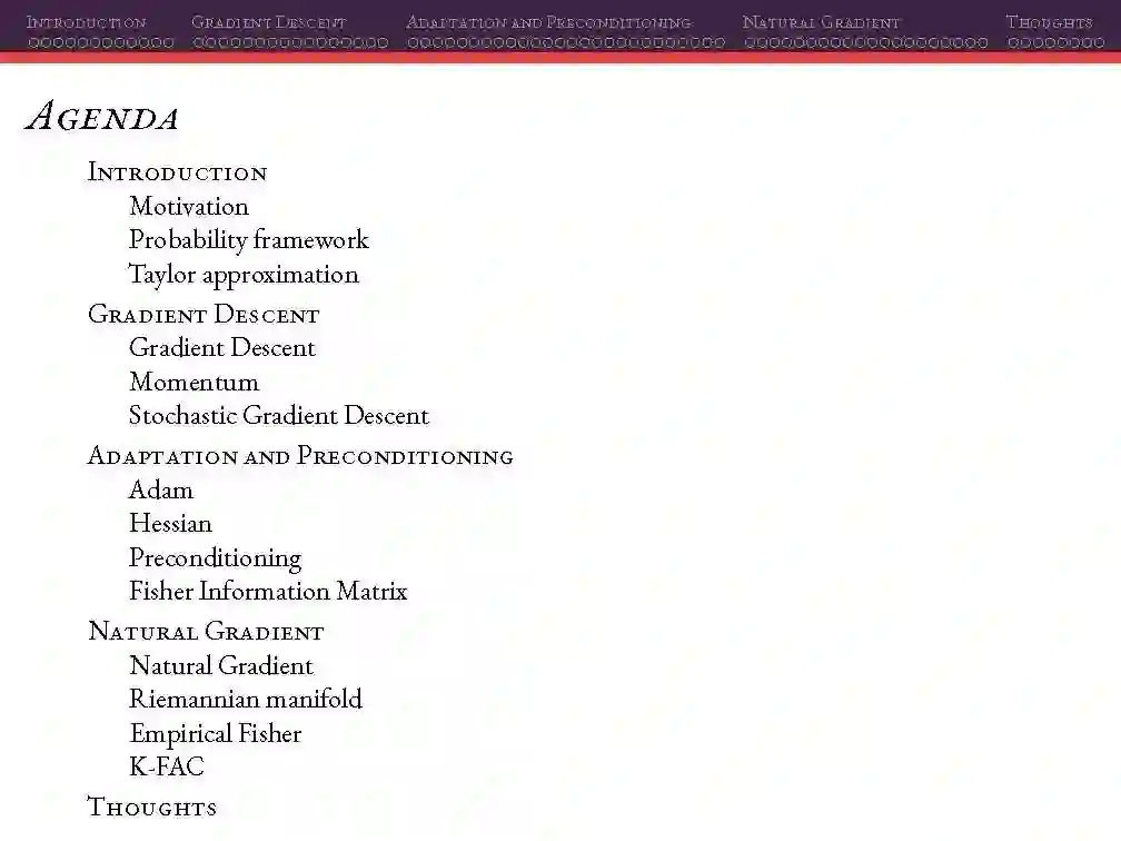 这个周末,我在阿雷格里港机器学习会议上做了一个关于深度学习的优化方法的演讲。在这个材料中,你会发现一阶方法的概述,二阶方法和一些二阶方法的近似以及自然梯度下降和近似。
