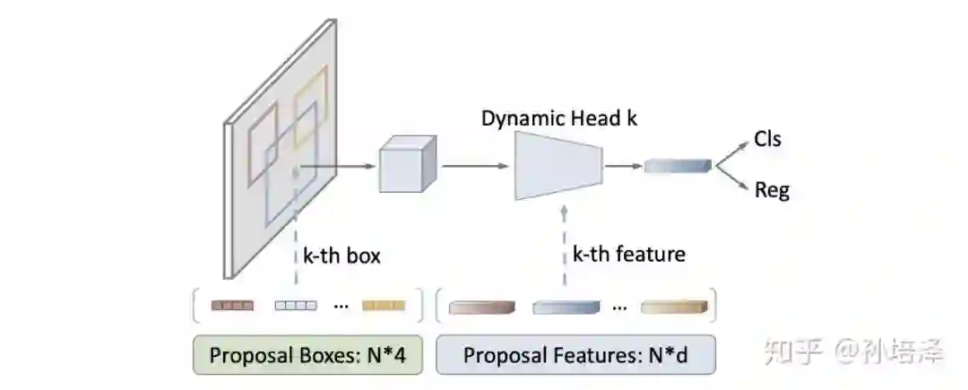 Head 是一组 iterative 的 Dynamic Instance Interactive Head,上一个 head 的 output features 和 output boxes 作为下一个 head 的 proposal features 和 proposal boxes。Proposal features 在与 RoI features 交互之前做 self-attention。