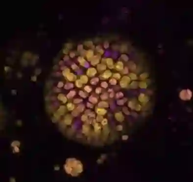 Fig. 2 Colony of Chroococcidiopsis-like cells where the different colours represent photosynthesis driven by chlorophyll-a (magenta) and chlorophyll-f (yellow). Credit: Dennis Nuernberg