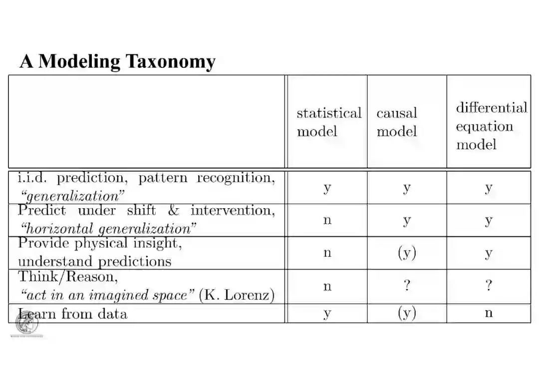 尽管最近取得了诸多成功,但如果我们将机器学习的能力与动物的能力进行比较,我们会发现,在一些动物擅长的关键技能上,前者相当糟糕。这包括迁移到新问题,任何形式的泛化,不是从一个数据点到下一个从相同的分布(采样),而是从一个问题到下一个——都被称为泛化。这个缺点并不是太令人吃惊,因为机器学习经常忽略生物大量使用的信息: 世界干预、领域迁移、时间结构。最后,机器学习也不擅长思考,在康拉德洛伦茨的意义上,即,在想象的空间中行动。我认为,因果性关注建模和推理,可以对理解和解决这些问题做出实质性的贡献,从而将该领域带入下一个层次。