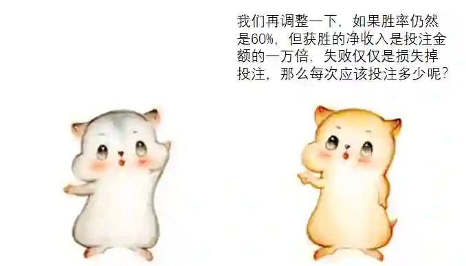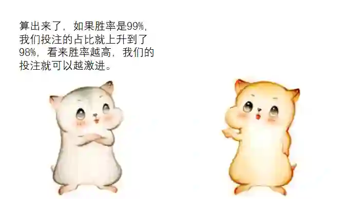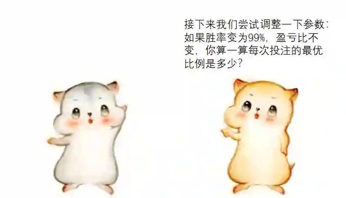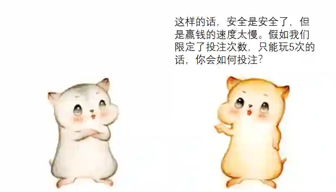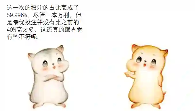 因此,当我们有100元的时候,我们的最优策略是一次投入总资金的20%,也就是20元。