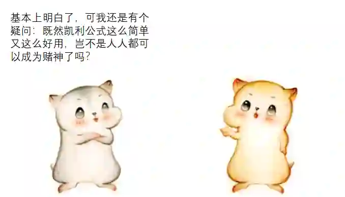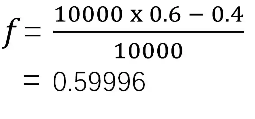 假如投注50元,赢了可以收回100元,净赚50元,输了净亏50元,那么赔率就是1:1,b=1(注意:计算赔率是用 净收入/净亏损,网上有些文章搞错了,把这种情况的赔率当成了2:1)