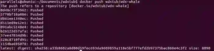 然后就可以 push 上去了 docker push wdxtub/wdx-whale,像下面这样