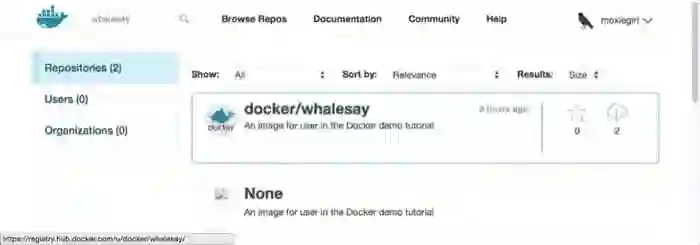 搜索 whalesay 这个镜像,就可以看到结果,点进去可以看到详细内容(基于 Ubuntu)