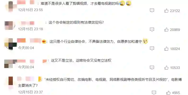 类似这样的声明和细则还有不少,有趣的现象是:许多协会关于短视频剪辑声明的发布,往往会引起部分网友们的质疑,有的甚至会为短视频剪辑辩护。
