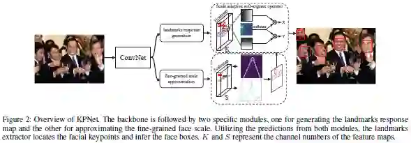 这篇论文发现脸部外观特征具有足够的判别力,用微型浅层神经网络也可以从背景中进行检测。与大多数自上而下联合面部检测和对齐方法不同,所提KPNet以自下而上的方式检测较小的面部关键点,而非整个面部。KPNet首先通过精心设计的细粒度比例逼近和比例自适应Soft-argmax运算符从低分辨率图像预测面部界标。无需任何复杂的头部架构或精心的网络设计,KPNet只需约1M参数即可实现通用人脸检测和对齐基准的当前最佳准确率,在GPU上的运行速度为1000fps,且易于在大多数前端芯片上实时执行。