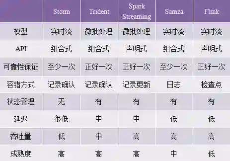 下面是Storm、Trident与另外几种流计算框架的对比: