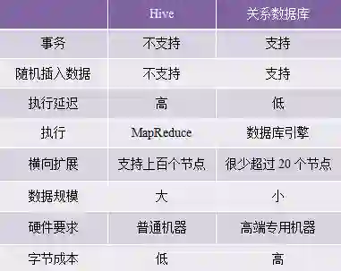 Apache Hive是最早出现的架构在Hadoop基础之上的大规模数据仓库,由Facebook设计并开源。Hive的基本思想是,通过定义模式信息,把HDFS中的文件组织成类似传统数据库的存储系统。Hive 保持着 Hadoop 所提供的可扩展性和灵活性。Hive支持熟悉的关系数据库概念,比如表、列和分区,包含对非结构化数据一定程度的 SQL 支持。它支持所有主要的原语类型(如整数、浮点数、字符串)和复杂类型(如字典、列表、结构)。它还支持使用类似 SQL 的声明性语言 Hive Query Language (HiveQL) 表达的查询,任何熟悉 SQL 的人都很容易理解它。HiveQL被编译为MapReduce过程执行。下图说明如何通过MapReduce实现JOIN和GROUP BY。