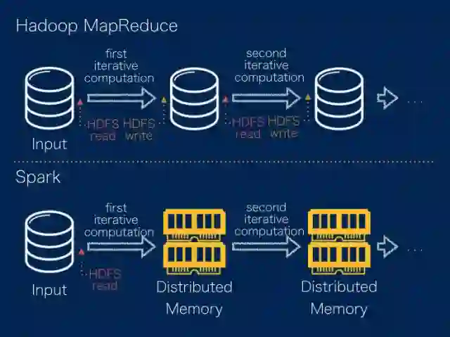 MapReduce的另一个不足之处是使用磁盘存储中间结果,严重影响了系统的性能,这在机器学习等需要迭代计算的场合更为明显。加州大学伯克利分校AMP实验室开发的Spark克服了上述问题。Spark对早期的DAG模型作了改进,提出了基于内存的分布式存储抽象模型RDD(Resilient Distributed Datasets,可恢复分布式数据集),把中间数据有选择地加载并驻留到内存中,减少磁盘IO开销。与Hadoop相比,Spark基于内存的运算要快100倍以上,基于磁盘的运算也要快10倍以上。