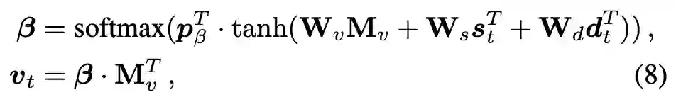 该模块的整体框架是一个 RNN,每一步的隐状态表示的问题的当前表示,并会作为 query 去检索文本和图像信息,具体流程可以表示为,这个可以看作 one-step reasoning,通过这样的一个循环方式,从而实现对细节的把握,从而最终给出正确的答案。