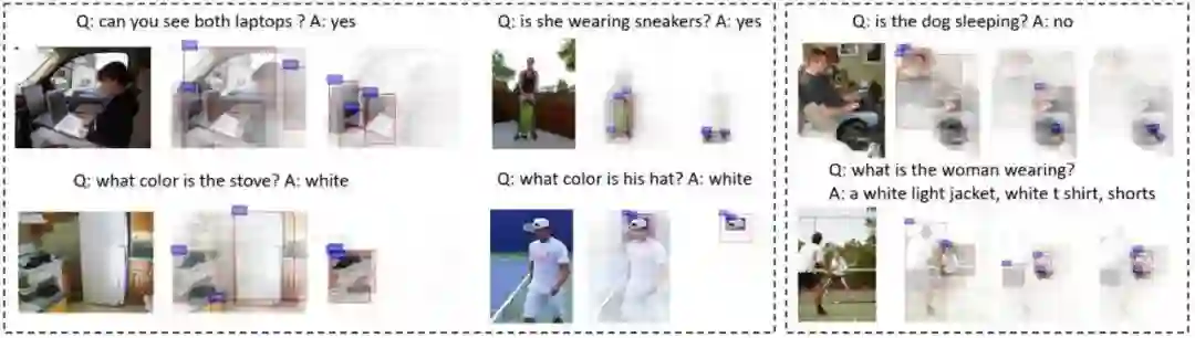 可以看出来模型是逐步从粗粒度到细粒度,慢慢关注到具体的细节,从而最终给出正确的答案,这部分感觉还是十分有意思的,而且在问题的生成模型中,可以看出模型不仅可以给出正确的答案,同时给出具体的细节内容,使回答更丰富,更具有说服力,如下图: