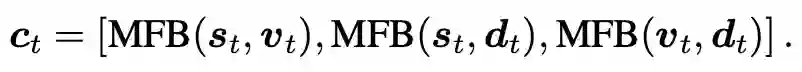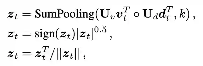 在之前的两步,是为了获取更多的有用的信息,因此使用注意力机制不断更新需要关注的地方,而这一步应该是将这些选择出来的信息进行融合,为回答问题提供辅助,也即这一步需要的是通过融合,得到送给 RNN 的输入,通过 RNN 的隐层状态更新,从而得到问题的新的表示。因此这里使用了 MFB 的方式来进行更新。