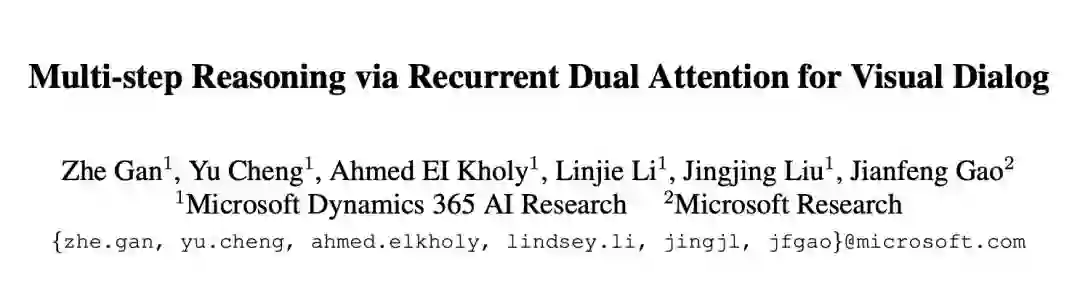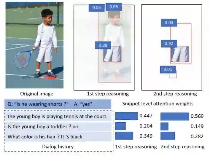 当前 Visual dialog 模型尽管已经取得了令人印象深刻的表现,但当问题涉及到图像的特定区域或者比较细节的对话片段时,模型就很难给出准确的答案。究其原因,单步的分析需要同时关于太多的信息,当需要特定的位置或者说需要对问题和图像,对话历史进行反复理解时,单步理解就收到了很大的限制。