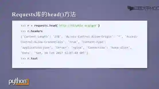 requests.head()可以得到服务器返回响应的头部信息