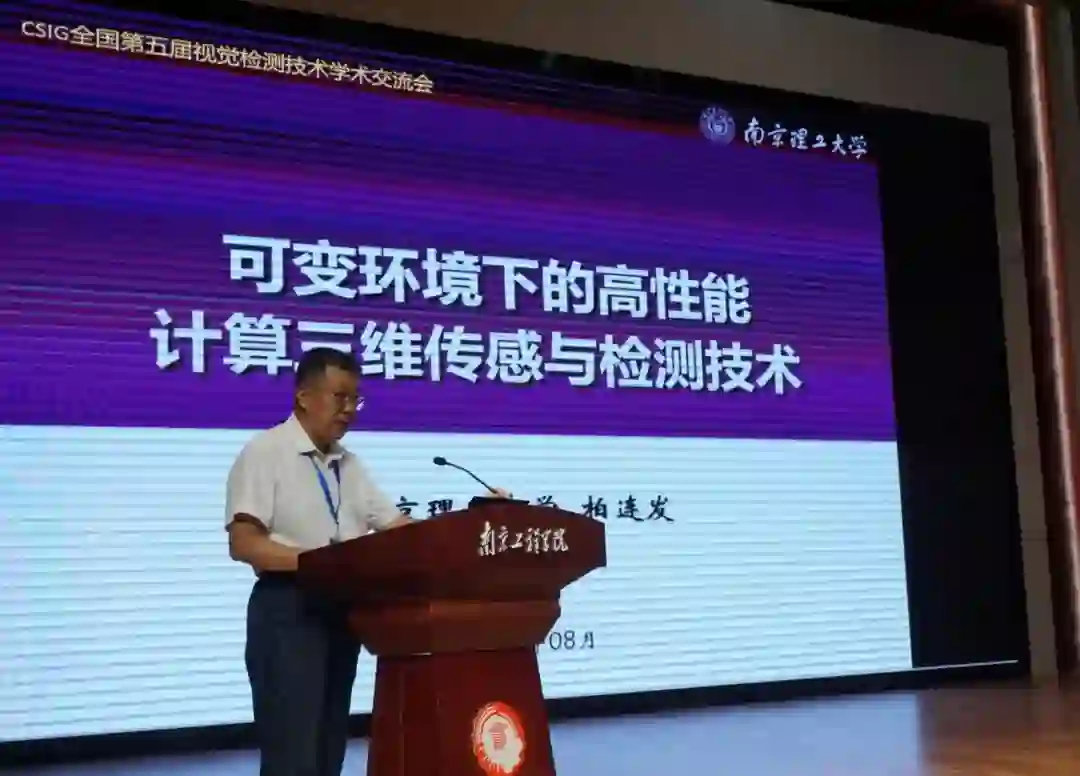 南京理工大学电子工程与光电技术学院院长柏连发教授的报告题目为“可变环境下的高性能计算三维传感与检测技术”,报告阐述了结构光投影计算三维重建理论,提出了“空间条纹相移”、“复杂环境误差补偿”等复合编码调制思路,并在相位测量领域引入深度学习机制,突破单帧投影高速高动态高精度三维重建,丰富了计算光学理论内涵,突破了复杂工况下的结构光三维测量综合性能,提升了工业数字化、智能化水平。