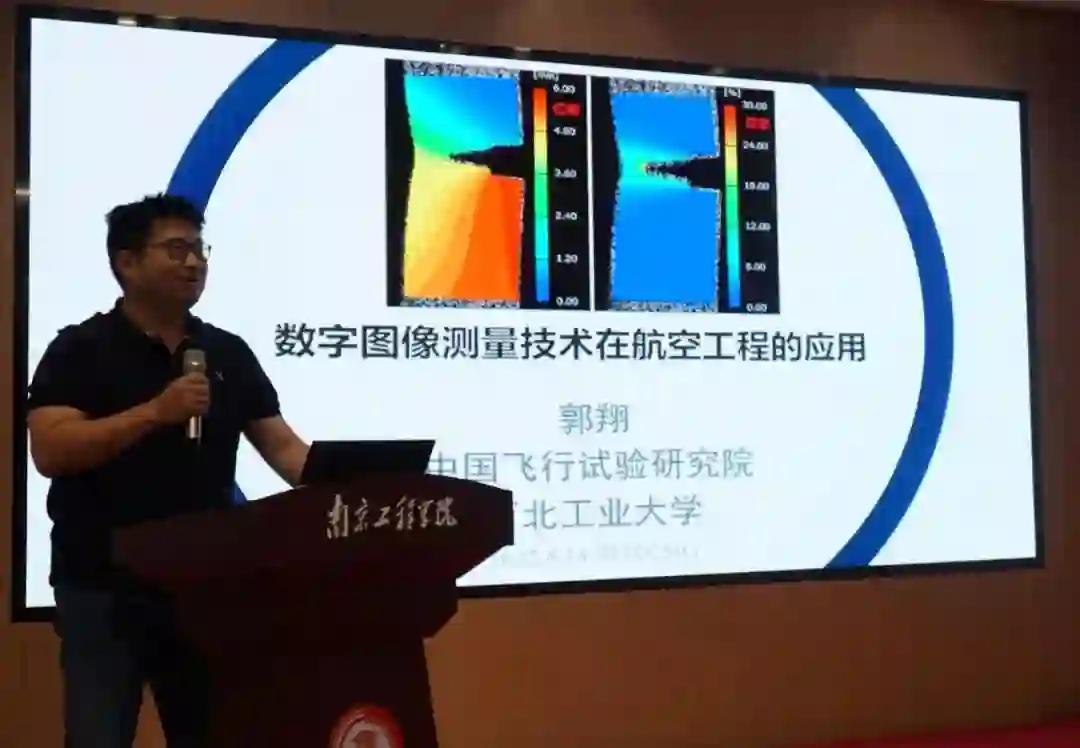 中国飞行试验研究院、西北工业大学郭翔副教授的报告题目“数字图像测量技术在航空工程的应用”,主要针对航空工程领域内的复杂变形过程中的测量问题展开研究,建立了数字图像复杂变形测量系统,实现了航空结构复杂变形测量中的噪声抑制、复杂结构飞行状态测量、复杂热力耦合变形过程力学性能测试,为研究航空材料/结构在复杂运动及变形过程中的运动评估及力学性能表征提供了新的测量手段。