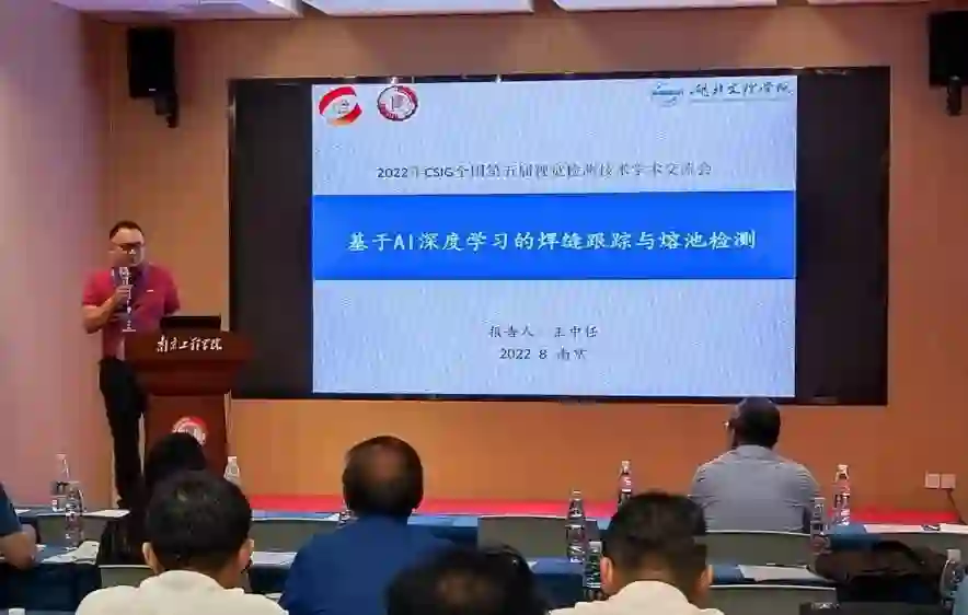 湖北文理学院王中任教授的报告题目“基于AI深度学习的焊缝跟踪与熔池检测”,在报告中,提出了一种改进U-Net的激光视觉焊缝跟踪方法,以及提出了一种结合GAN与改进PSPNet的熔池深度学习检测方法,实现了对熔池的动态跟踪与精准检测。通过GAN中的解码器、编码器及小步数的反卷积模块,对焊接熔池图像进行增强,实现了熔池动态分割和实时检测。