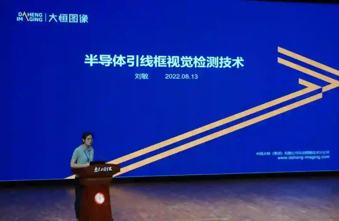 中国大恒(集团)有限公司北京图像视觉技术分公司软件部经理、高级工程师刘敏经理的报告题目为“半导体引线框视觉检测技术”,重点讲述了半导体封测之引线框架检测及其视觉检测方案。