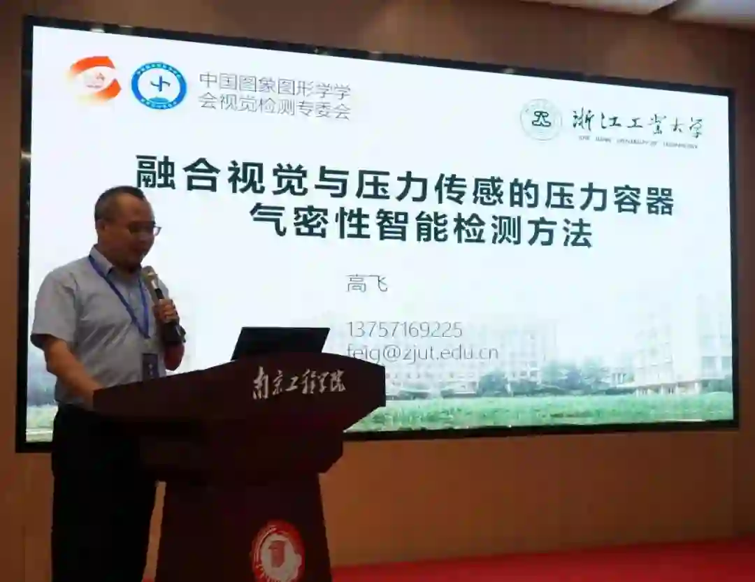 浙江工业大学图形图像研究所所长高飞教授的报告“融合视觉与压力传感的压力容器气密性智能检测方法”,高教授针对当前压力容器气密性试验存在少检、漏检、试验压力不达标、保压时间不足等及现有研究的不足,展开了压力容器气密性试验智能检测方法研究。