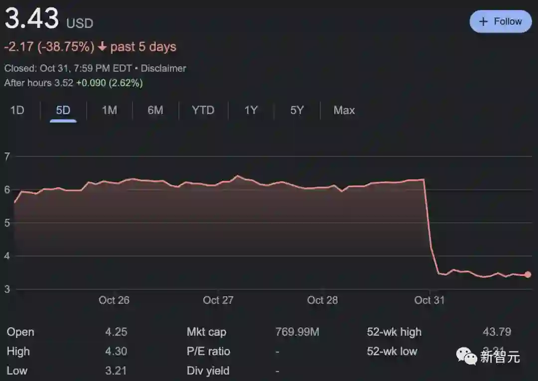 此消息一出,图森未来的股价立刻下跌将近一半。