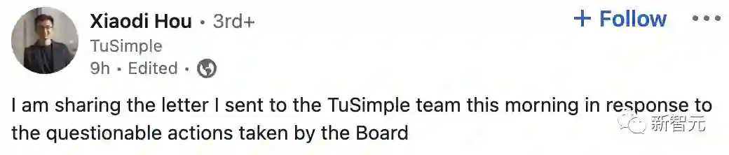 对此,侯晓迪在LinkedIn上发布声明,称董事会解除他职务的决定是「没有理由的」,并发誓要继续为公司奋斗:「让政治阻碍我们共同追求的梦想,这太不公平了」。