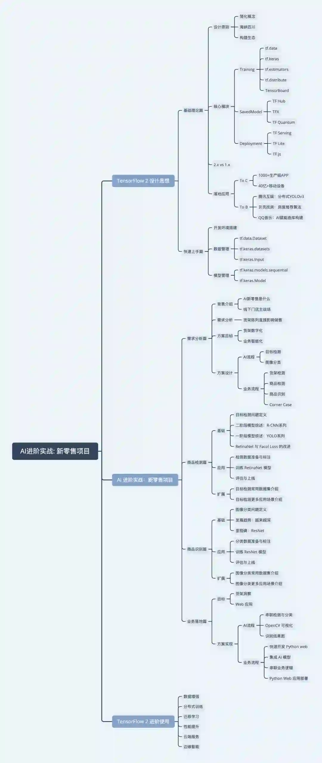 这张图谱出自彭靖田,之前看过他的《TensorFlow 快速入门与实战》,由浅入深讲解了四个 TensorFlow 实战项目,跟着学下来,感觉收获很大。前段时间,又刷了他出的第二季《TensorFlow 2 项目进阶实战》,讲得真的太硬核了,真心推荐。