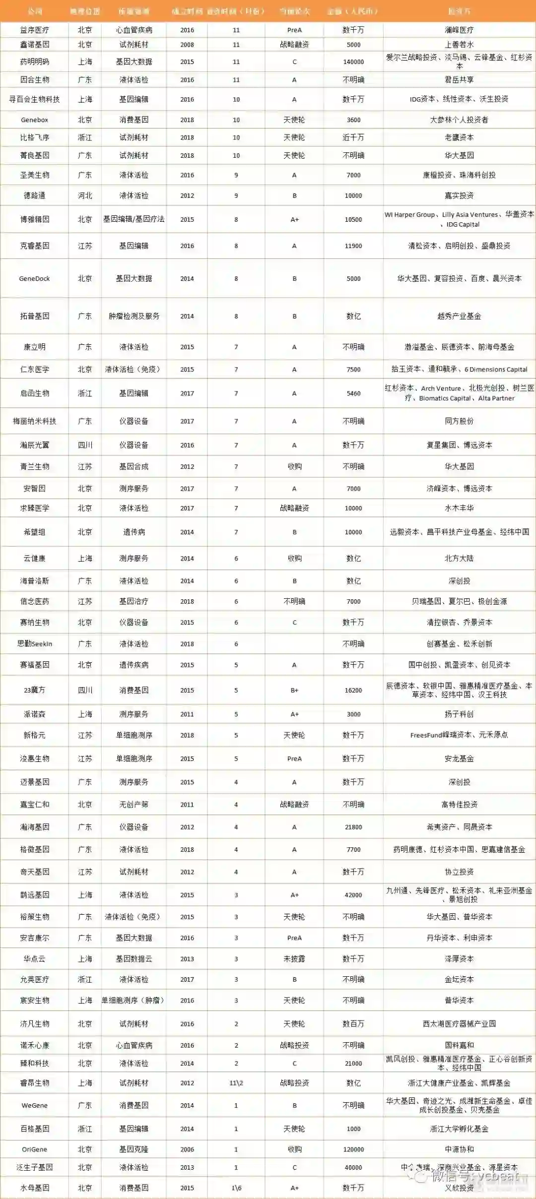 2014、2015年是基因领域的创业潮,而今这些企业大部分都已经到了B轮、C轮等后期阶段。或许,这个行业即将迎来上市和并购的热潮。