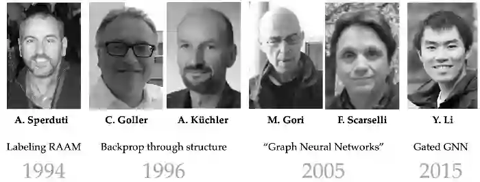 图神经网络的早期形式至少可以追溯到20世纪90年代,包括Alessandro Sperduti的Labeling RAAM, Christoph Goller和Andreas Küchler的「通过结构的反向传播」,以及数据结构的自适应处理。