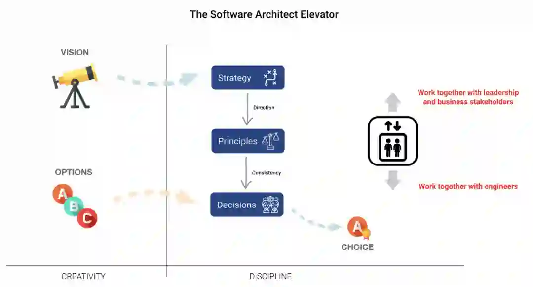 这类角色的复杂性的确是因组织而异,于我而言,我认为应该首先确定什么是软件架构师,以避免产生混淆。为此,我们主要依靠 The Software Architect Elevator(暂无中译本,本文暂译为《软件架构师电梯》)一书作者 Gregor Hohpe 提出的概念。