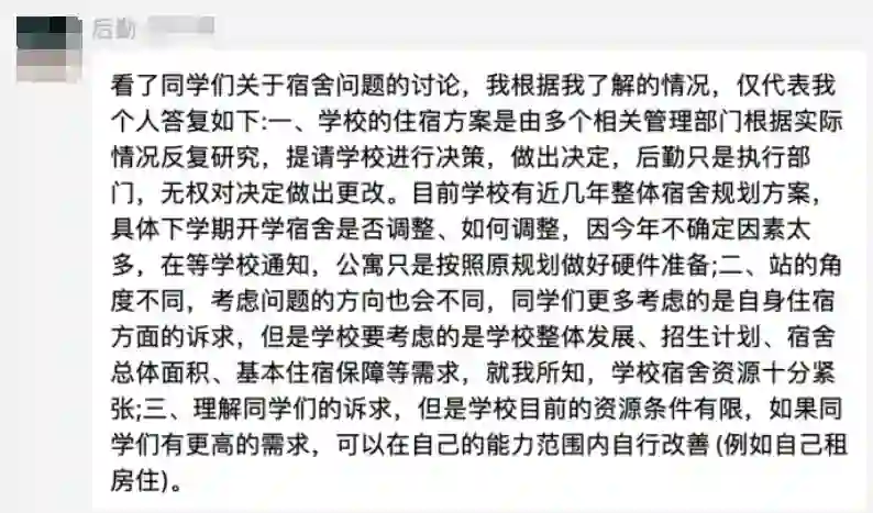 好好的博士生宿舍为何非要增设床位?学校的后勤针对学生们的质疑也给出了回答: