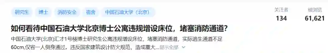 如何看待中国石油大学北京博士公寓违规增设床位,堵塞消防通道?