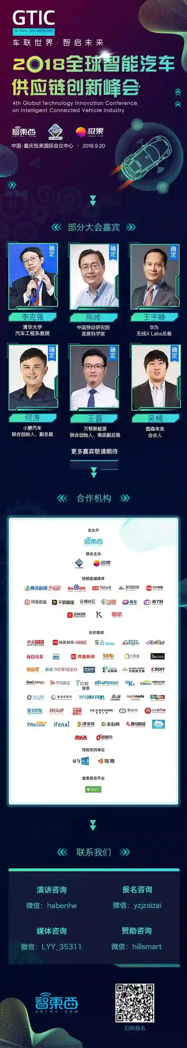今年9月20日,智东西将在重庆召开2018全球智能汽车供应链创新峰会,邀请来自整车厂、Tier1供应商、自动驾驶、车联网等领域公司高管共同探讨智能汽车的时代机遇。目前峰会报名已经全面开启,大家可以扫描海报底部的二维码直接报名。